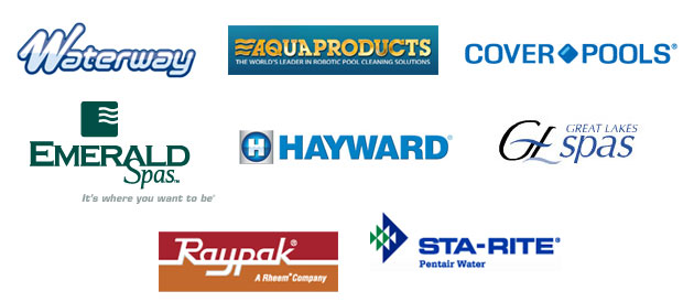 Raypak gas heaters, Coates Electric heaters, StaRite pumps, Pentair and